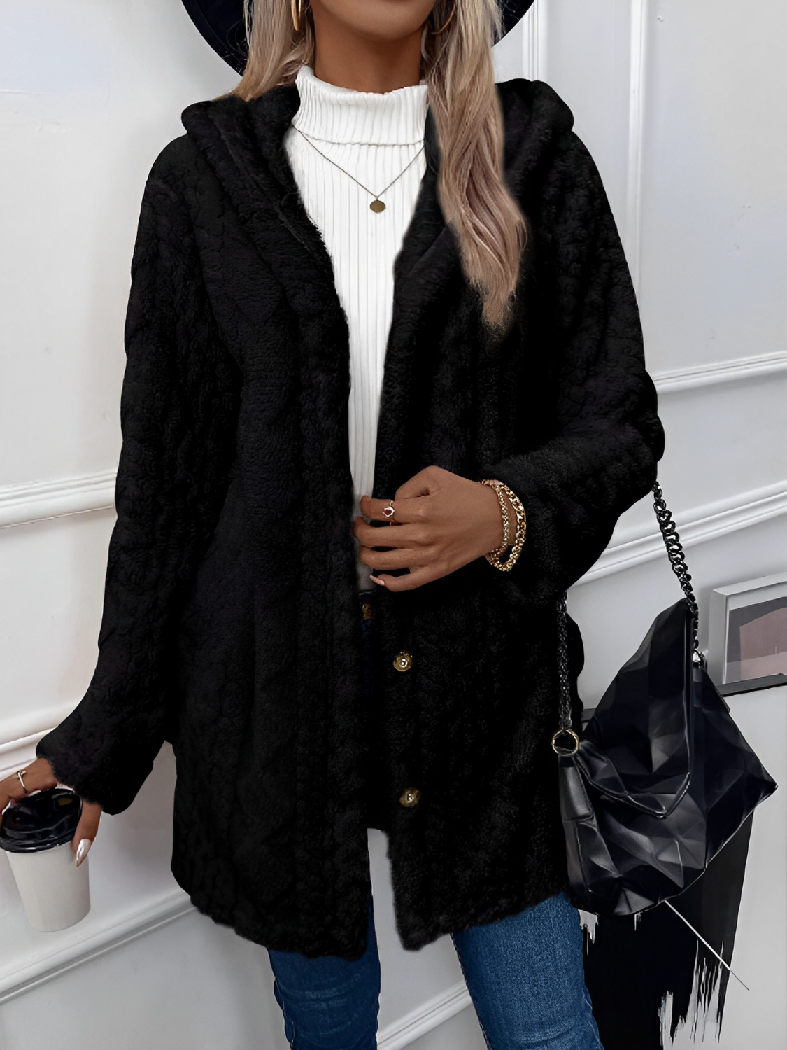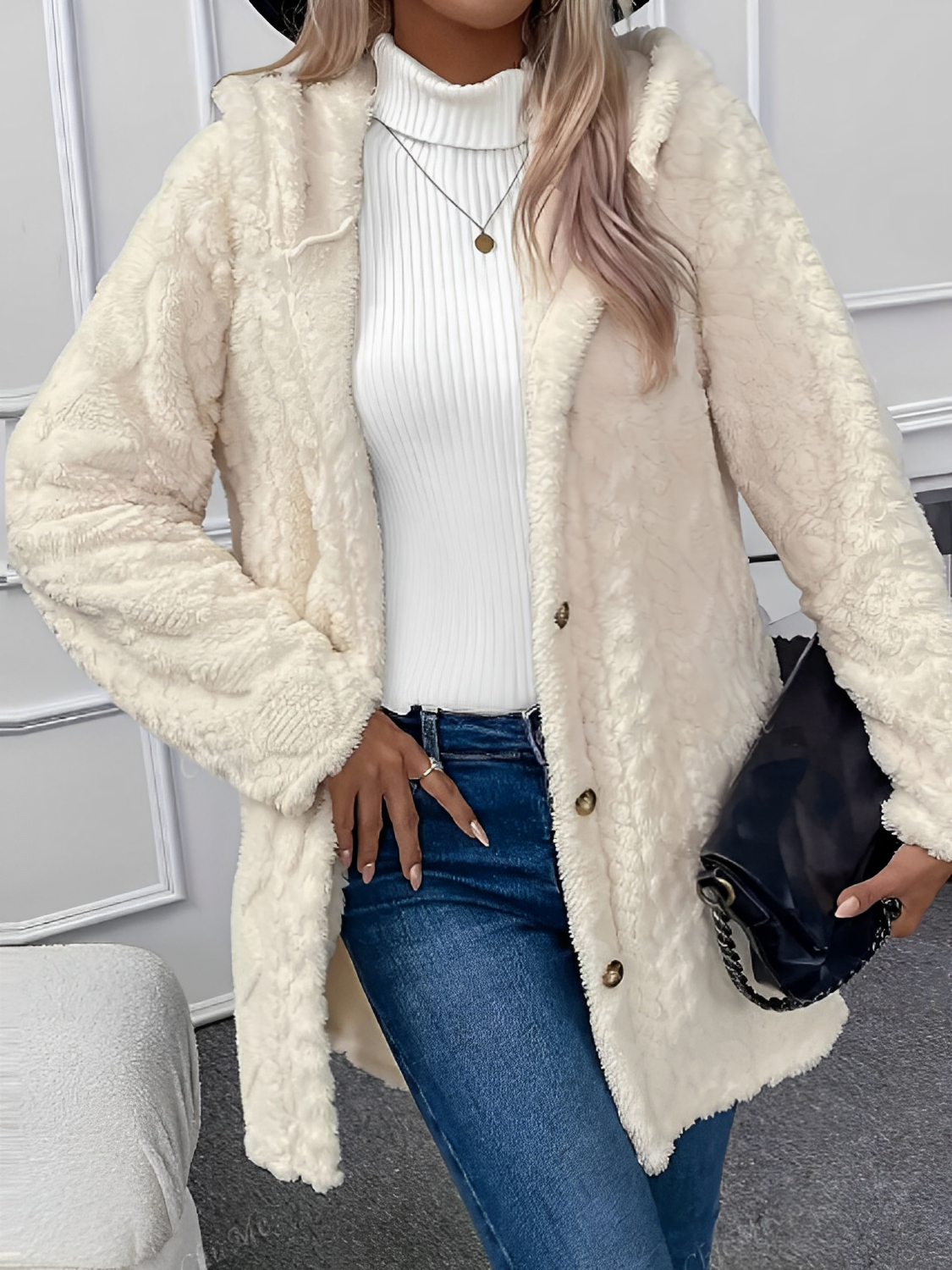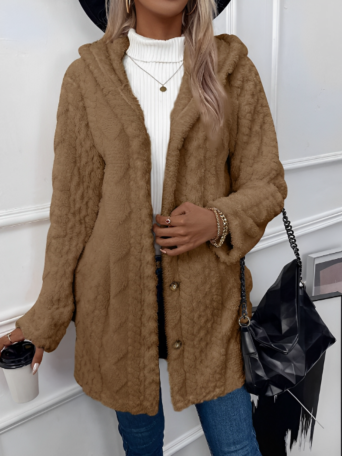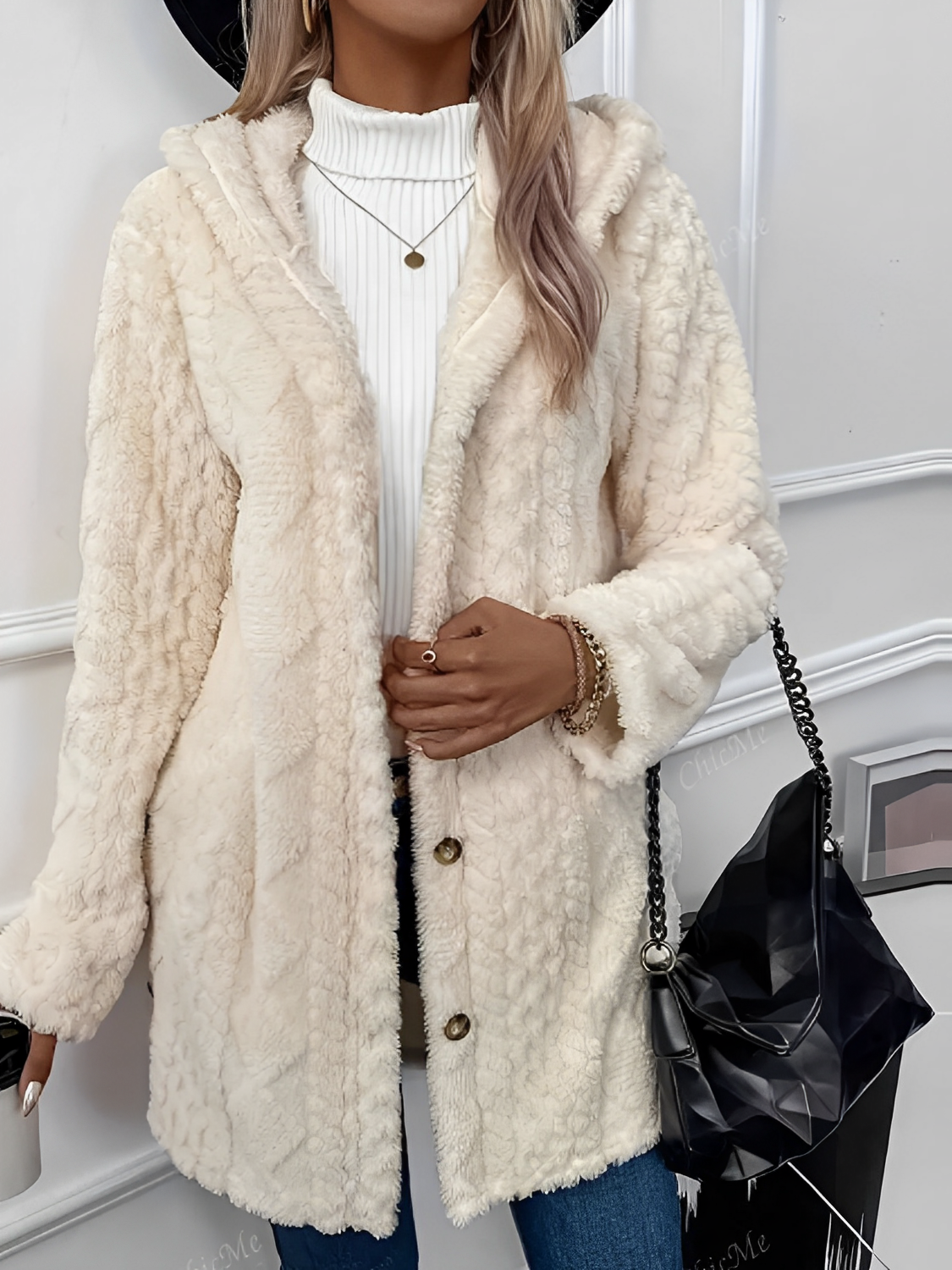 Casilda | Abrigo Teddy Peluciado con Capuz Texturizado Lana