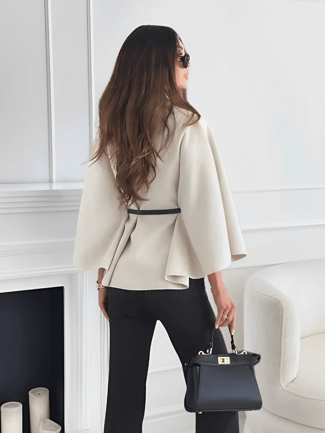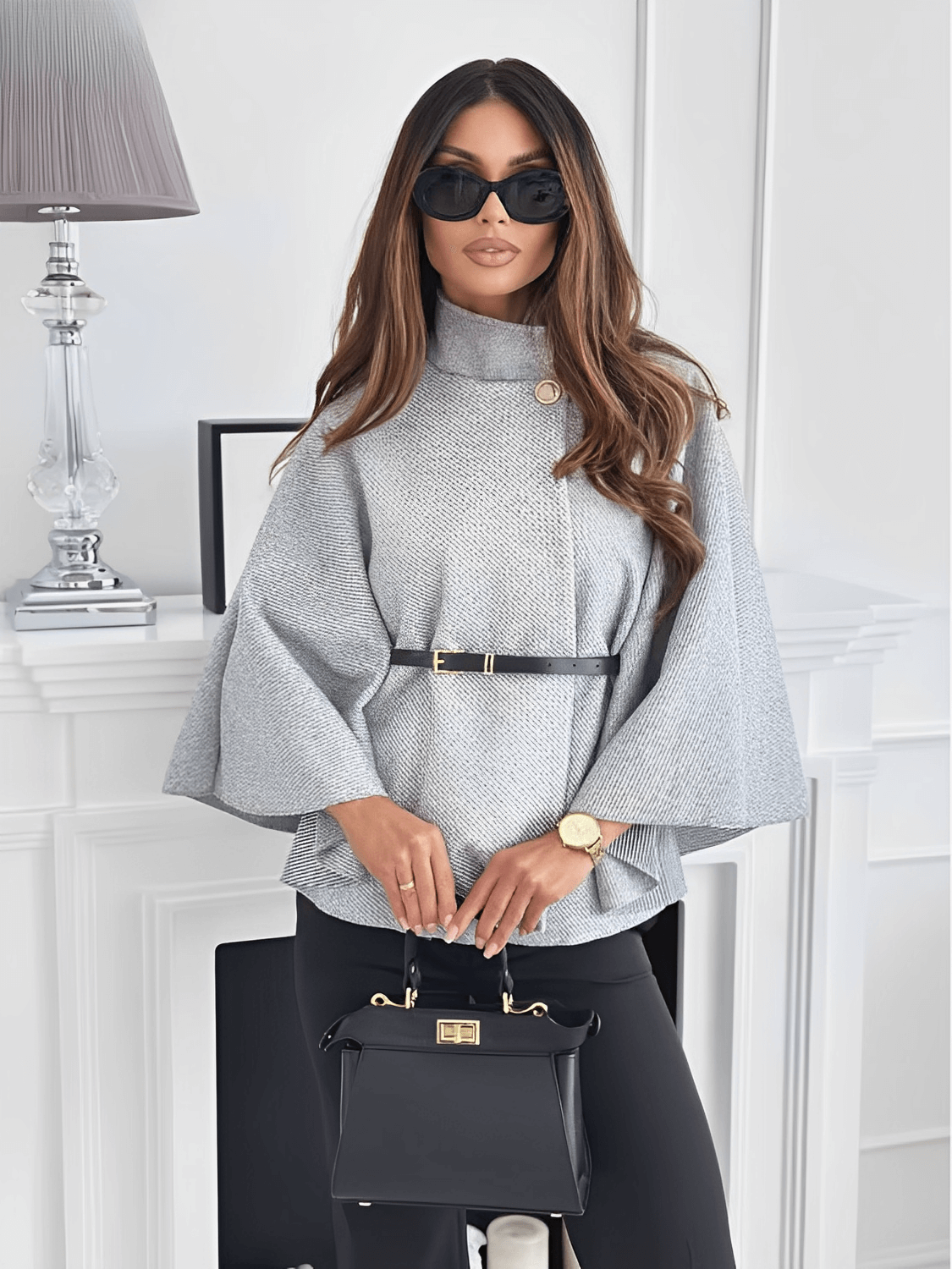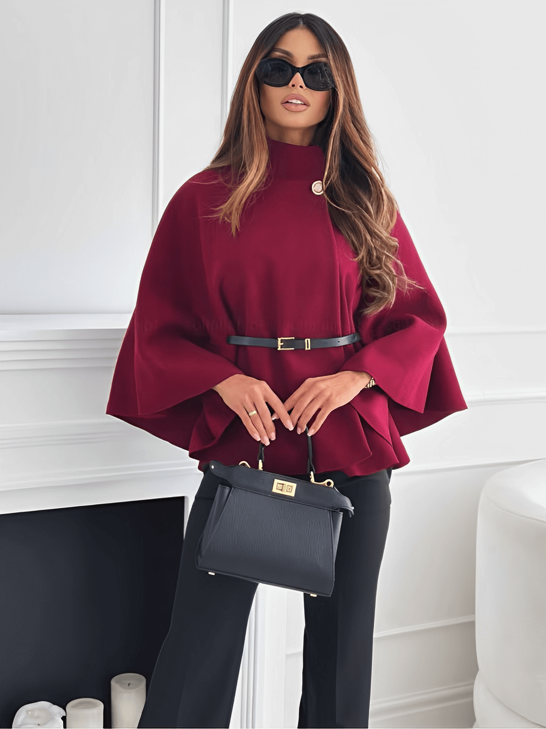 Celestina | Abrigo Capa Mujer Cuello Alto Cinturón Manga — Abrigo capa elegante y cálido