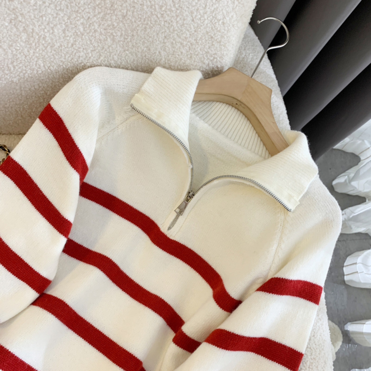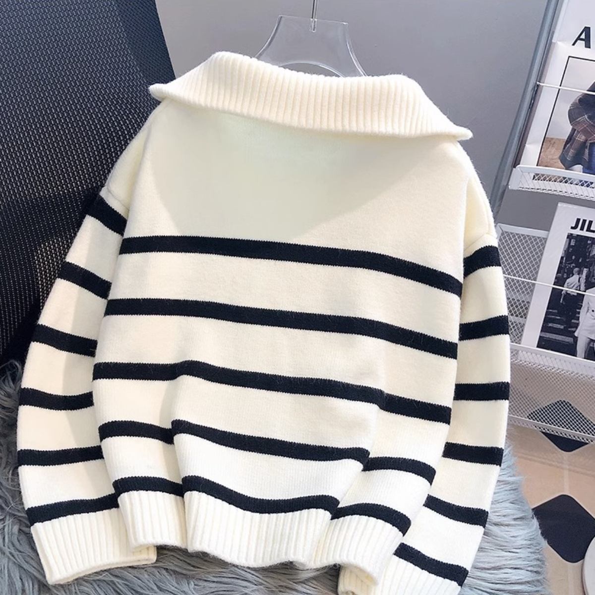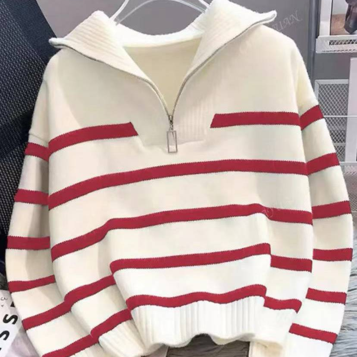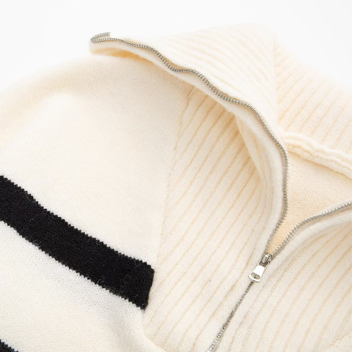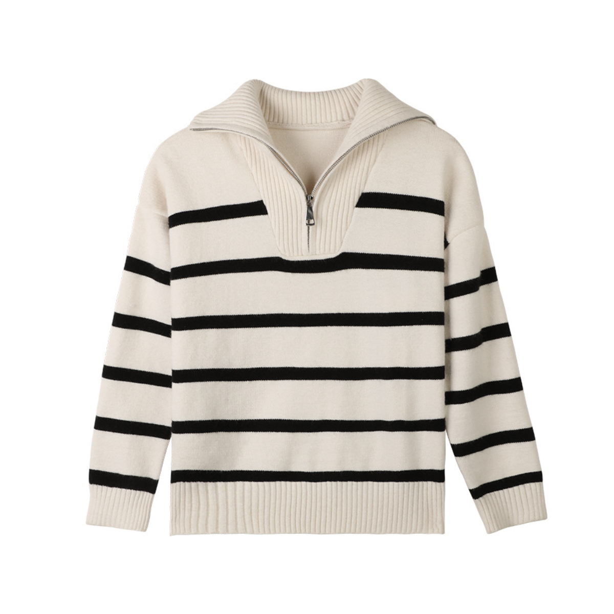 Martina | Suéter de Rayas con Cremallera y Cuello Alto