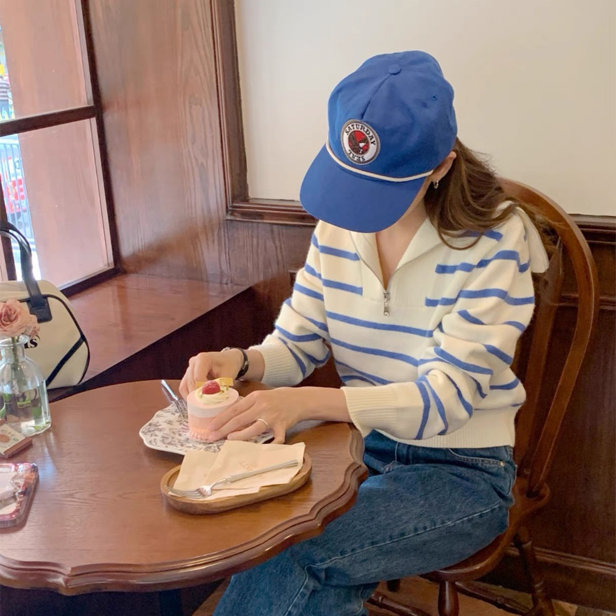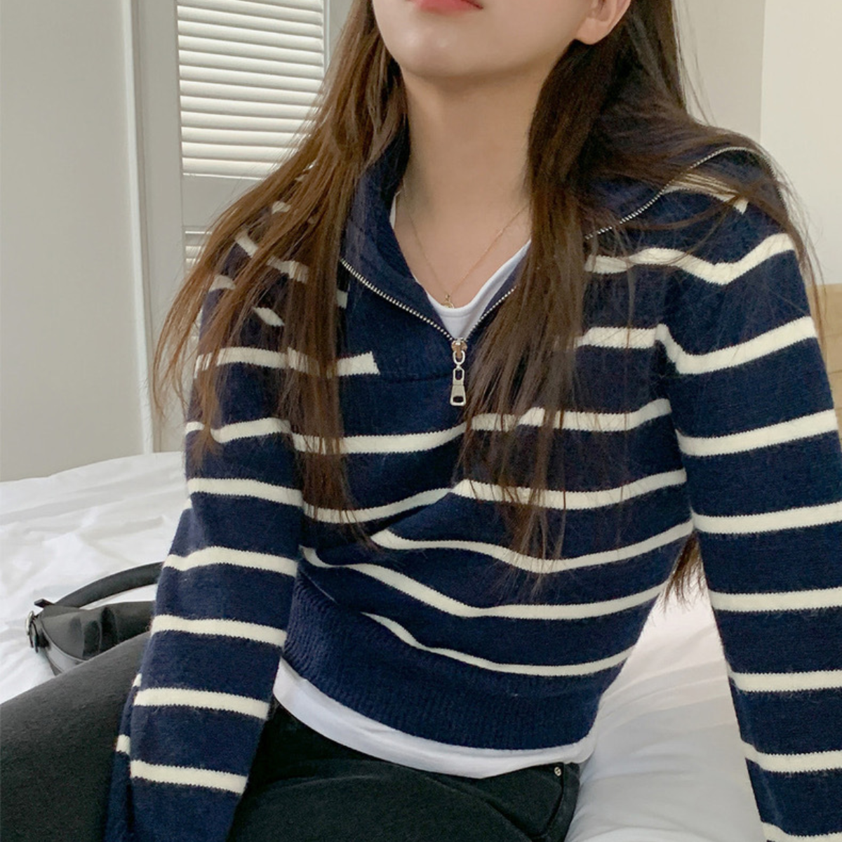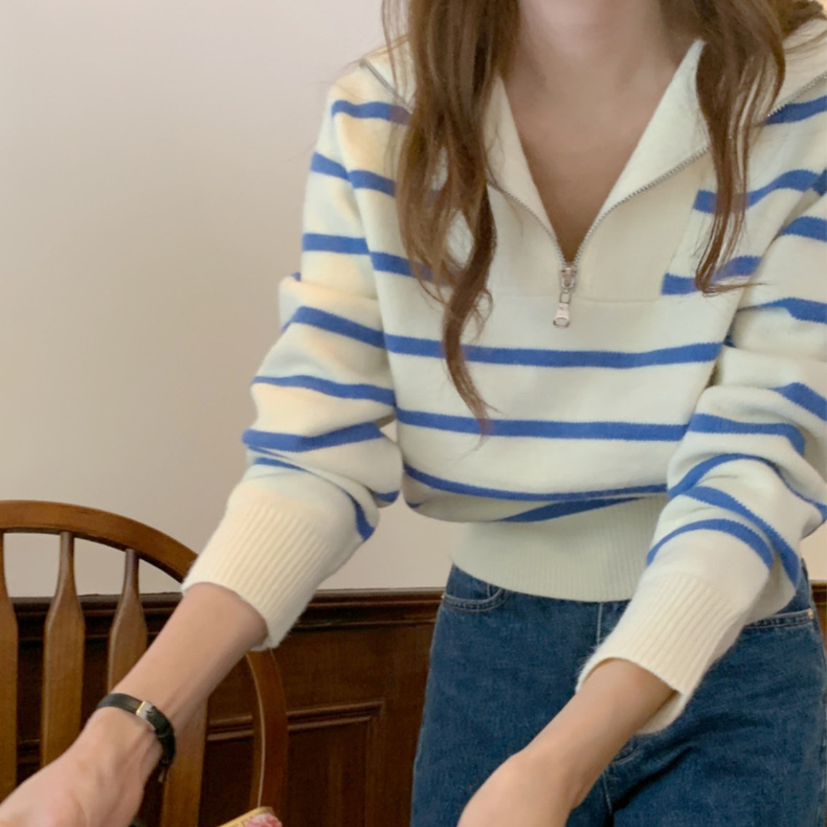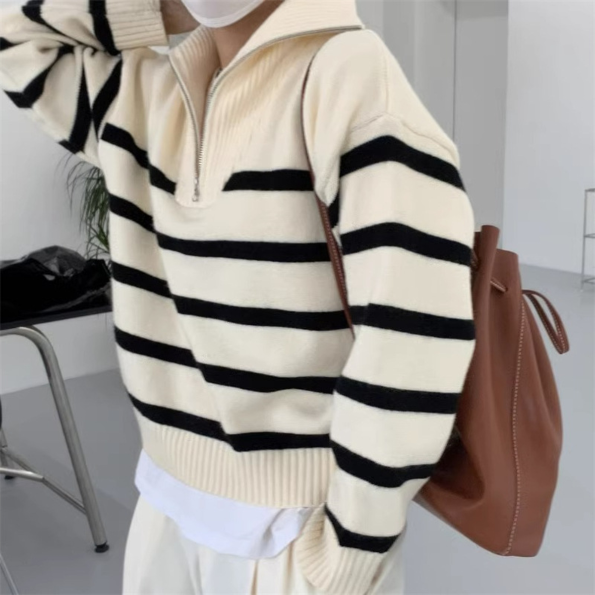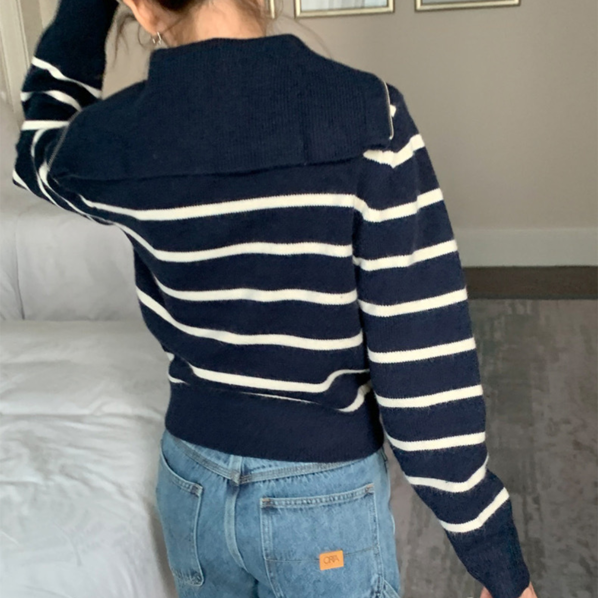 Martina | Suéter de Rayas con Cremallera y Cuello Alto