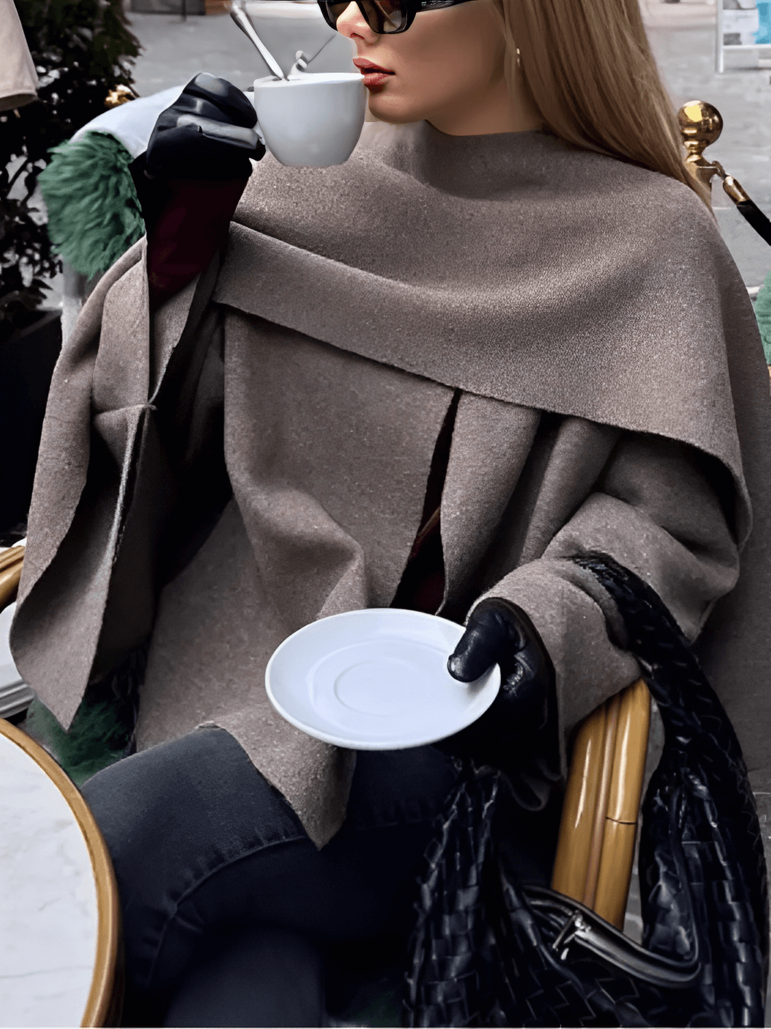 - 1x Casaco Feminino Estilo Poncho con Gola Lenço – Alana