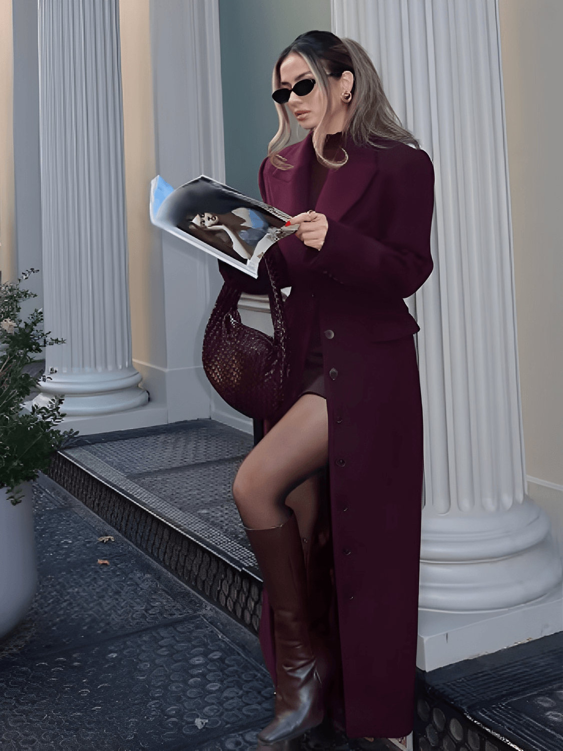 Su versatilidad lo hace perfecto para looks urbanos, viajes o salidas formales. Combínalo con botas altas para un estilo sofisticado o con zapatillas y jeans para un contraste moderno. Los tonos vino y gris facilitan la coordinación con colores neutros y acentos más vivos.
