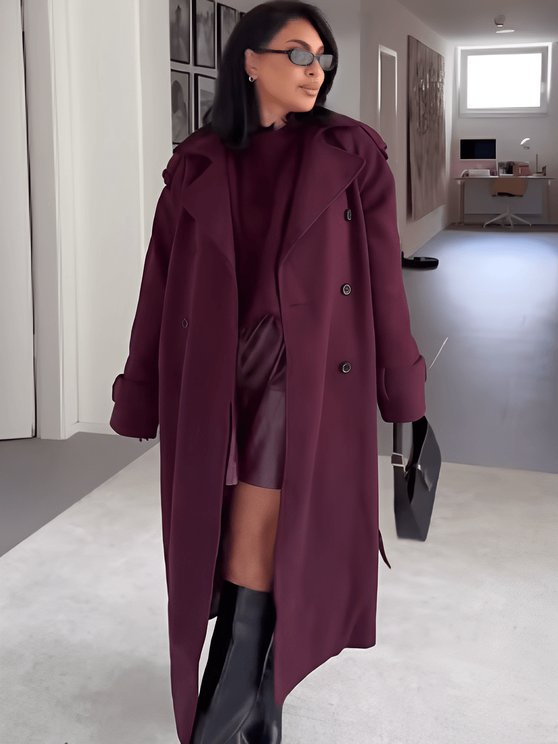 - Presencia atemporal: largo extendido que combina con looks formales y casuales, ideal para invierno urbano.