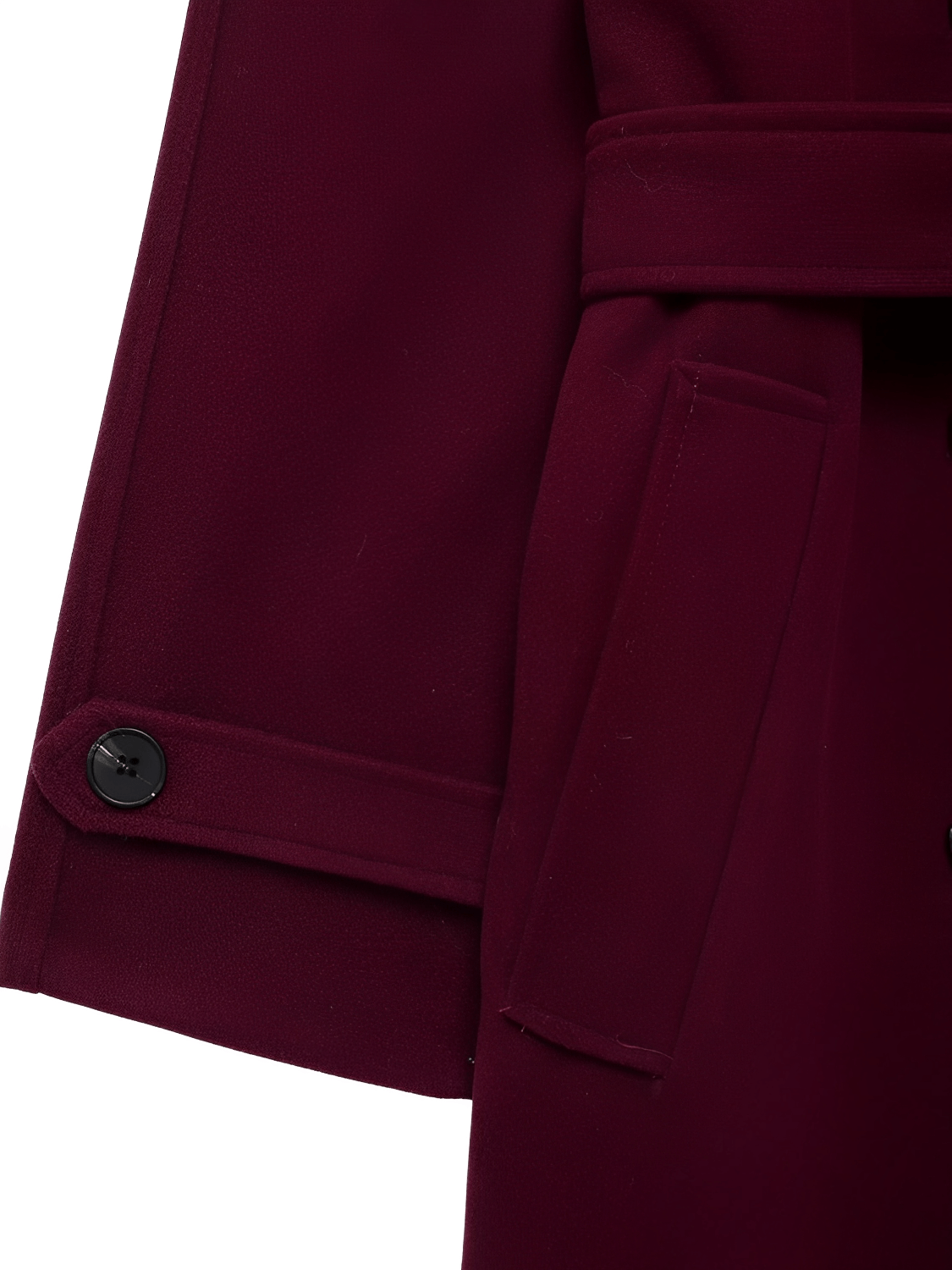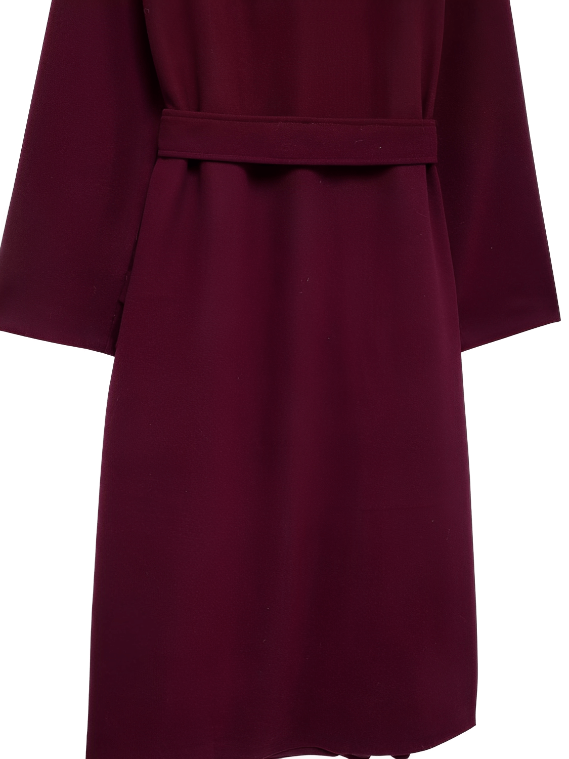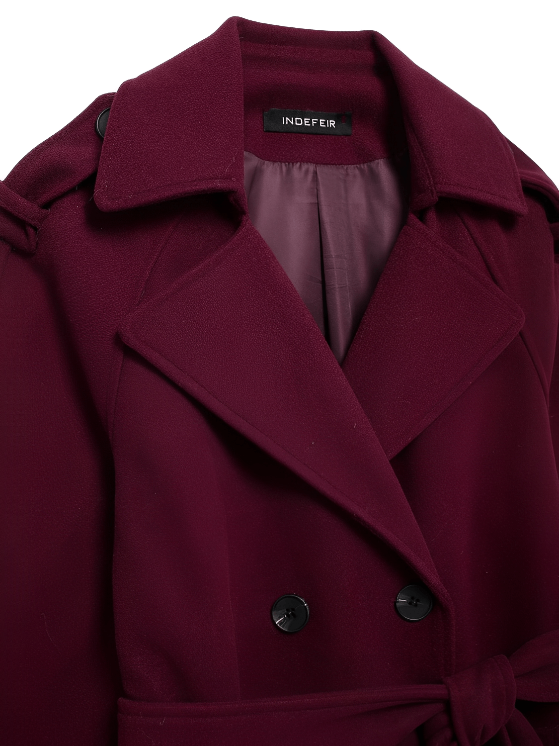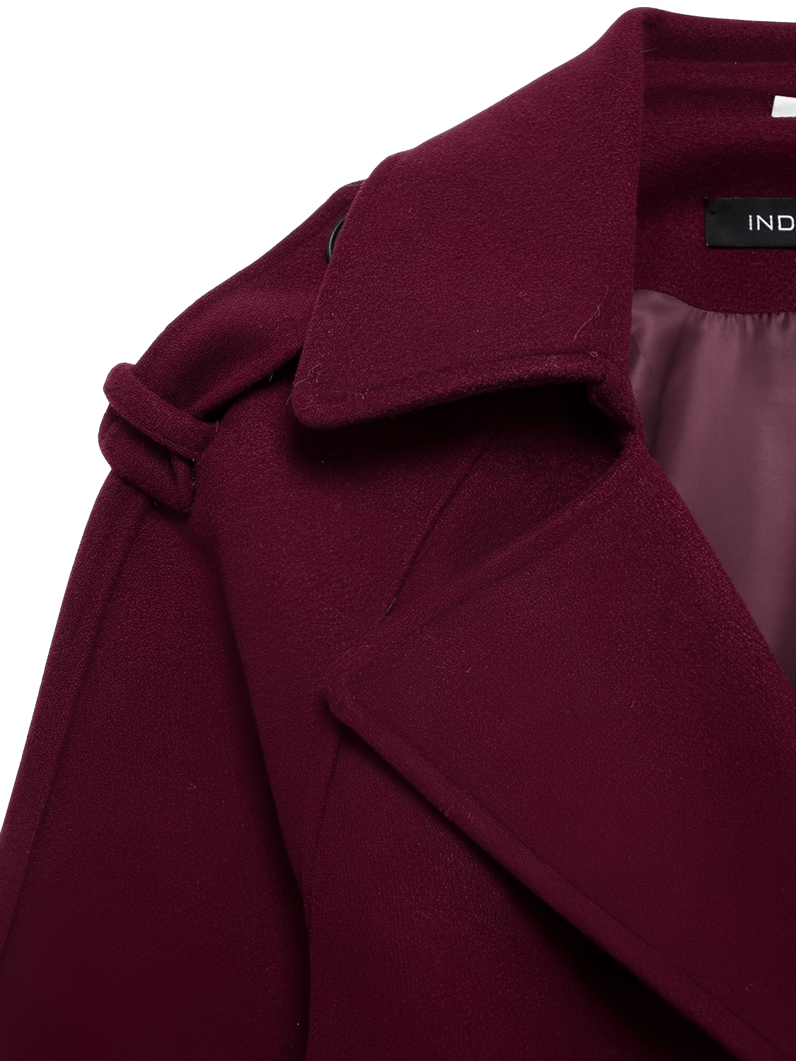 Diferenciadores competitivos: tejido encorpado de lana batida que ofrece textura y aislamiento, detalles de sastrería contemporánea (solapas en hombros y botones decorativos), y una faixa para amarrar que añade versatilidad de estilizado —todo en una pieza larga y estructurada pensada para la mujer moderna.
