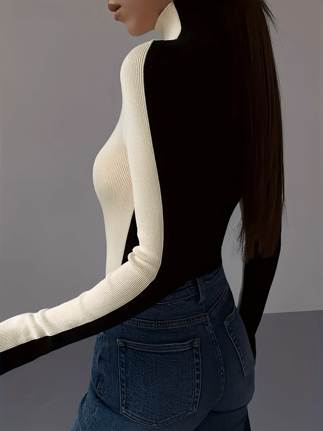 Imagina una mañana fría: te pones el suéter con la cara blanca hacia fuera para un café con amigas; por la tarde, cambias el estilo girando la prenda para mostrar el lado negro y acudir a una reunión con un look más formal. Este suéter funciona como una pieza de transición perfecta entre temporadas, llenando de versatilidad tu vestuario.