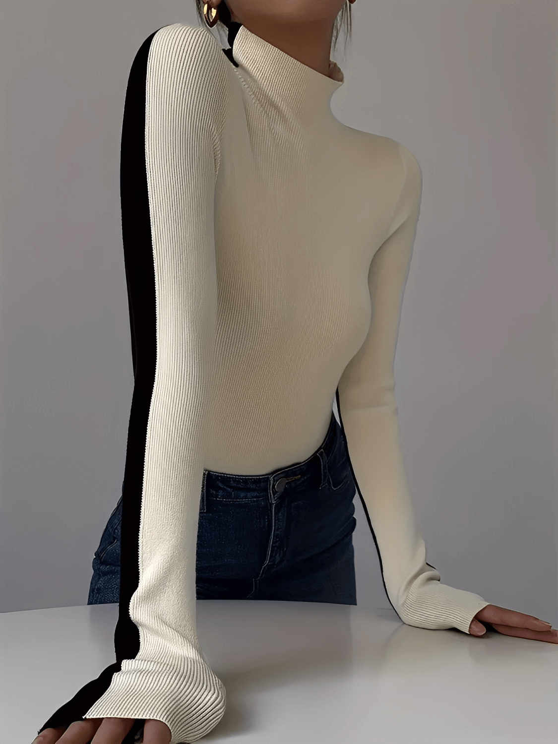 Suéter Punto Bicolor Cuello Alto Doble Cara – Jovita