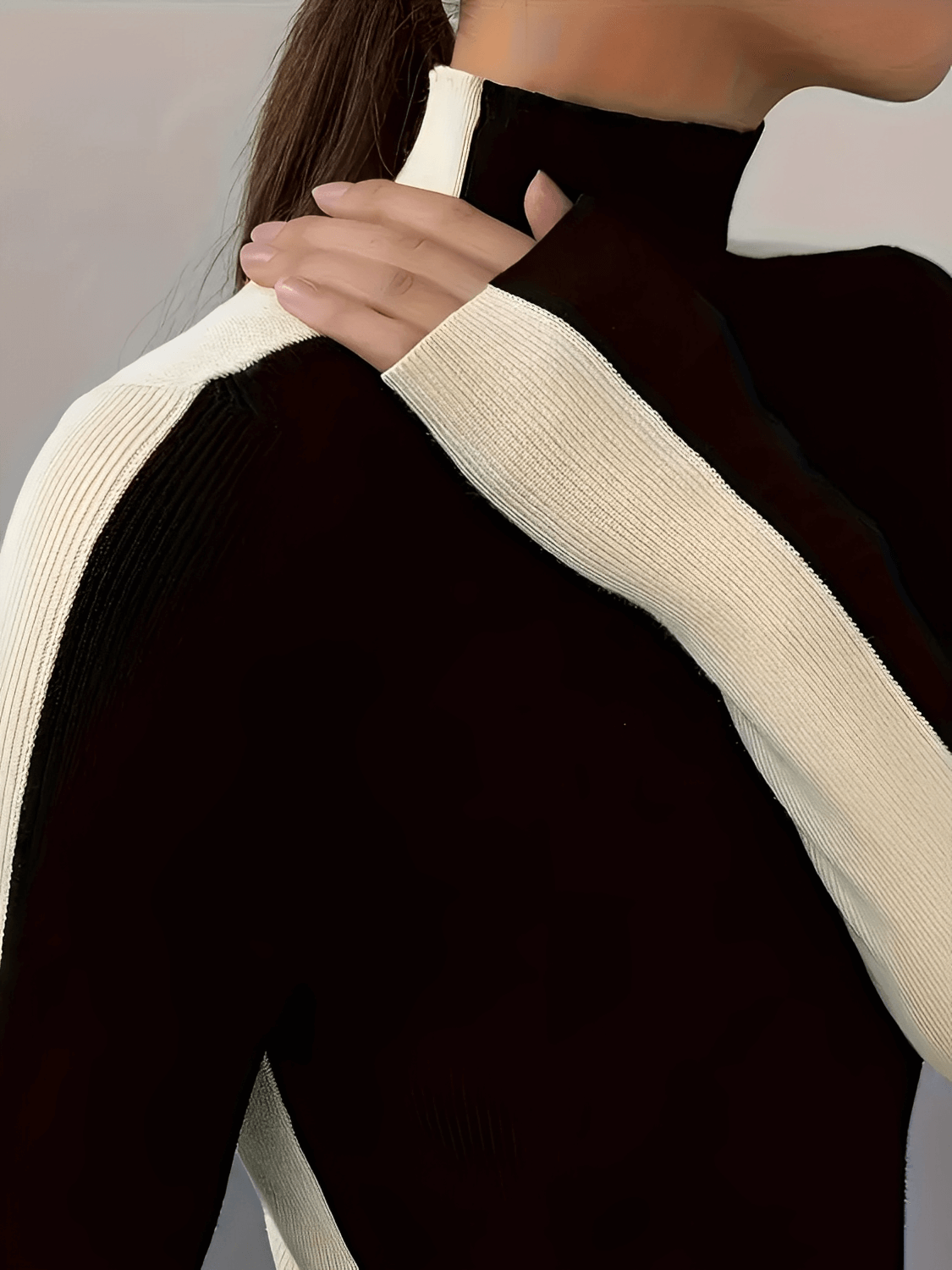 Jovita | Suéter Punto Bicolor Cuello Alto Doble Cara